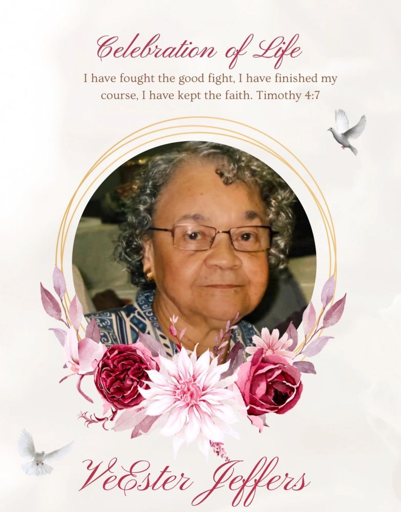 Welcome. We are here to honor the life, love, and legacy of VeEsters Jeffers.Grandmother, mother, wife, family, and friend.